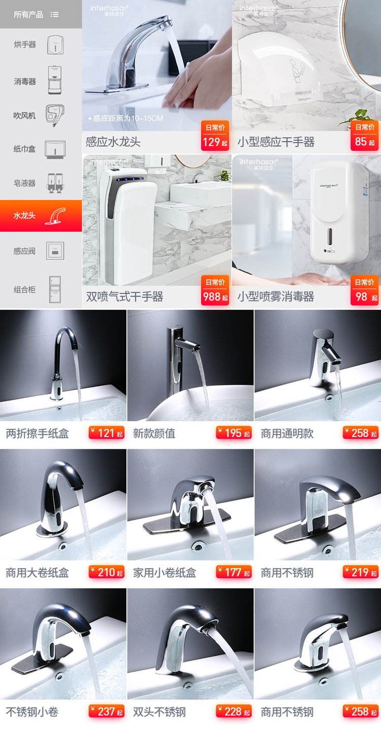 英特汉莎全自动感应水龙头商用智能单冷热出水感应式红外台盆龙头